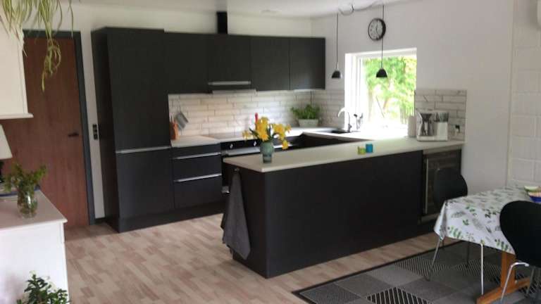 Die voll ausgestattete Küche beinhaltet einen Kühlschrank und eine Kaffeemaschine, wodurch die Zubereitung von Mahlzeiten und Snacks wie Zopf oder Gipfeli möglich ist.
