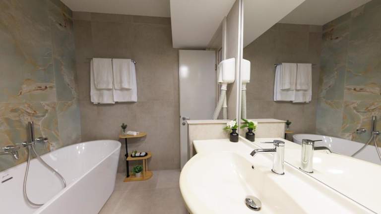 Die Zimmer sind mit einem Doppelbett, Queensize-Bett oder Kingsize-Bett sowie einer Minibar und einem Minikühlschrank ausgestattet. Für Kommunikations- und Unterhaltungsmöglichkeiten sorgen ein Telefon, Sat-TV sowie kostenfreies WiFi. Das Hotel bietet zudem Familienzimmer und Nichtraucherzimmer an.