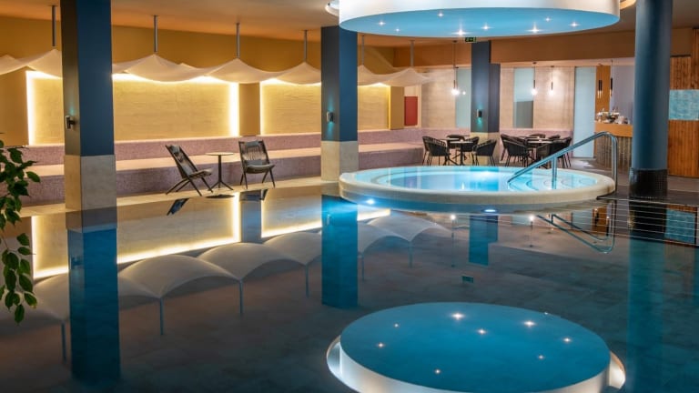 Der Hotelbereich verfügt über einen beheizbaren Outdoor- und Indoor-Pool sowie einen Kinderpool. Ein Fitnessstudio mit diversen Indoor-Sportmöglichkeiten ist vorhanden, darunter Tischtennis, Billard und Bowling. Das Wellnessangebot umfasst ein Spa, eine Sauna, ein Dampfbad und Massagen. Für aktive Gäste werden Velofahren und Mountainbiking angeboten. Für Familien steht ein Kinderclub sowie ein Kinderspielplatz zur Verfügung.