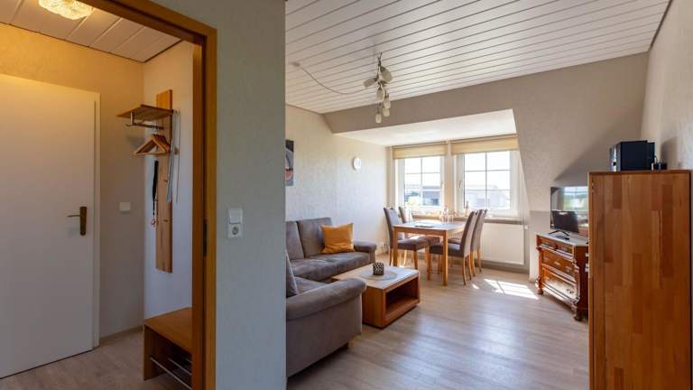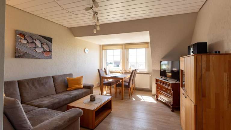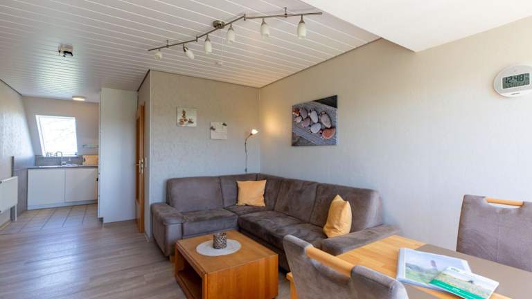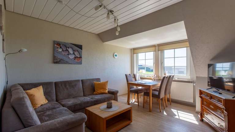 Hus Pellworm 2 - Ferienwohnung 'Meereswelle' bietet Übernachtungsmöglichkeiten mit heimeligen Annehmlichkeiten wie kostenlosem Wifi und einem TV. Die Ferienwohnung befindet sich in einem ruhigen Garten und bietet einen kostenlosen Privatparkplatz.