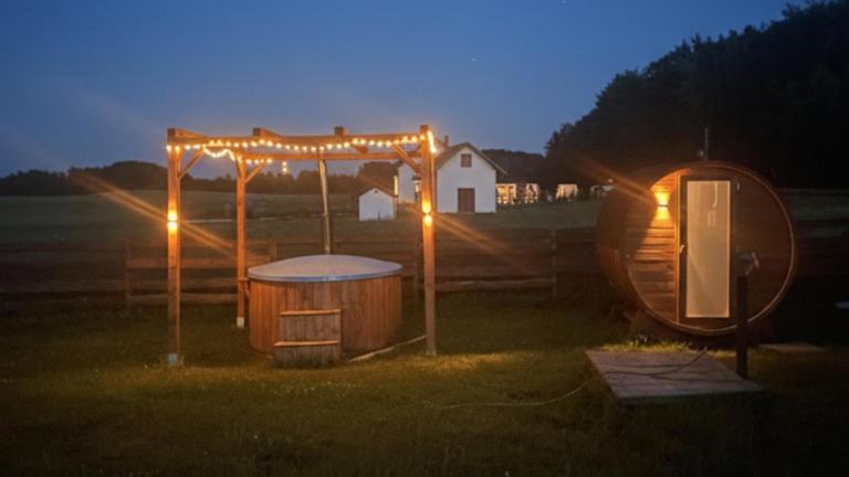 Hutowisko ist eine Villa mit einem eigenen Pool und einem Garten, die durch Grillmöglichkeiten ergänzt wird. Die Unterkunft bietet 5 Schlafzimmer, ein Wohnzimmer, eine Terrasse mit Gartenblick sowie eine gut ausgestattete Küche. Spa- und Wellnesseinrichtungen, inklusive Sauna und Whirlpool, stehen zur Verfügung. Zudem gibt es einen saisonalen Aussenpool und einen Kinderspielplatz.