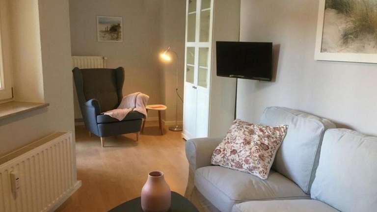 Die Ferienwohnung umfasst ein Schlafzimmer sowie ein Wohnzimmer mit einem Flachbild-TV. Eine voll ausgestattete Küchenzeile mit Kühlschrank und Geschirrspüler steht zur Verfügung. Ausserdem gibt es ein Badezimmer mit Dusche. Handtücher und Bettwäsche können gegen Aufpreis bereitgestellt werden.
