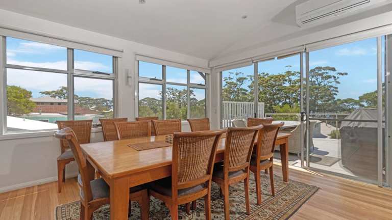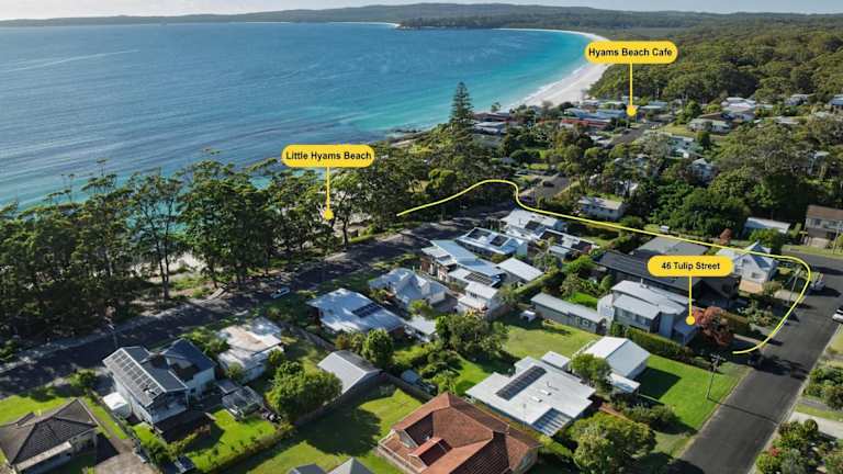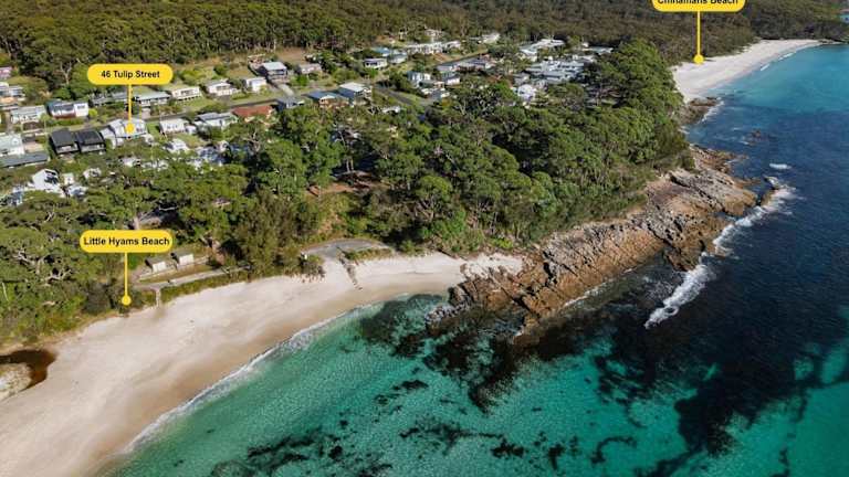 Das Ferienhaus Hyams Reflections in Hyams Beach bietet geräumige Übernachtungsmöglichkeiten mit einer heimeligen Veranda und einer Terrasse mit herrlichem Gartenblick. Es verfügt über einen Garten, der einen angenehmen Rückzugsort bietet, sowie über kostenfreies Wifi und Parkiermöglichkeiten für die Gäste.