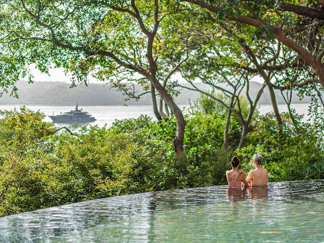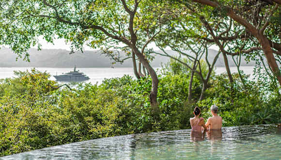 Das Hotel Andaz Costa Rica Resort at Peninsula Papagayo liegt in der Nähe von Culebra, in der Region Guanacaste. Es befindet sich inmitten des Regenwaldes und bietet direkten Zugang zum Strand. In der Umgebung gibt es zahlreiche Möglichkeiten für Outdoor-Aktivitäten wie Wandern, Schnorcheln und Kajakfahren. Die Stadt Liberia und der internationale Flughafen Liberia-Daniel Oduber Quirós sind ebenfalls leicht erreichbar.