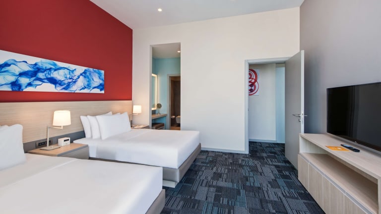 Die Zimmer sind komfortabel und modern eingerichtet und verfügen über Annehmlichkeiten wie Klimaanlage, einen Sitzbereich, einen Flachbild-TV und einen Safe. Die Badezimmer sind mit Dusche, Haarfön und Pflegeprodukten ausgestattet. Einige Zimmer bieten Meerblick sowie Zugang zu einem Balkon, darüber hinaus sind auch Familien- und Nichtraucherzimmer buchbar.