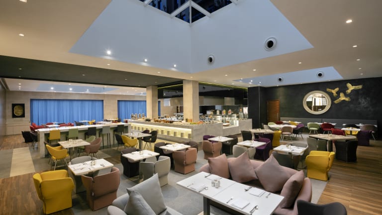 Die gastronomischen Einrichtungen umfassen ein Restaurant, ein Café und eine Bar, die abwechslungsreiche Speisen anbieten. Das Frühstück wird als kontinentales und amerikanisches Buffet serviert, zusätzlich gibt es Optionen für spezielle Ernährungsbedürfnisse wie Diät- und Kindermenüs.