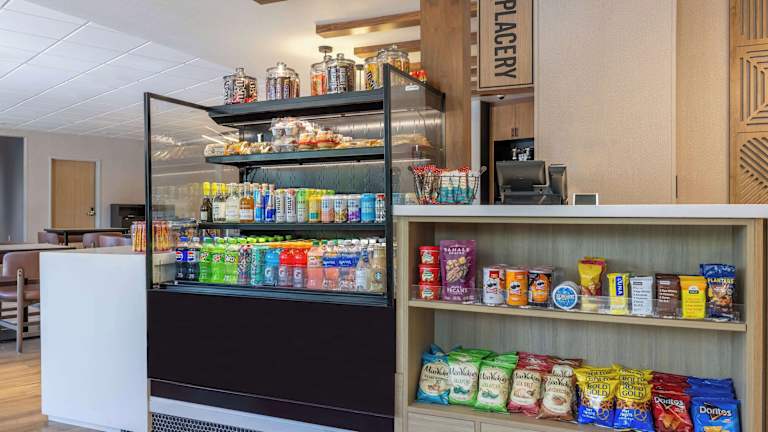 Jeden Morgen wird ein Frühstück angeboten, das kontinentale sowie amerikanische Optionen als Buffet enthält. Weitere Verpflegungsmöglichkeiten sind ein Restaurant und eine Bar vor Ort. Snacks und Getränke sind über Verkaufsautomaten erhältlich.