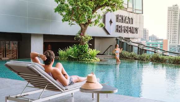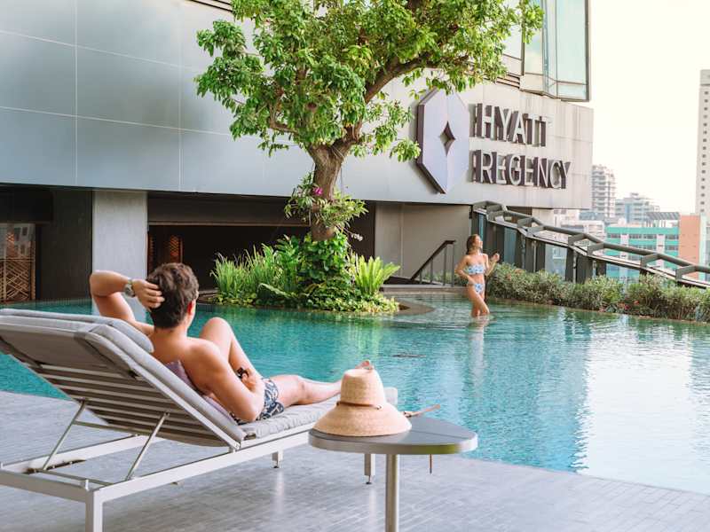 Übernachten Sie im Fünf-Sterne-Hotel im Herzen von Sukhumvit, Bangkok Entdecken Sie einen lebendigen und dynamischen Aufenthalt im Hyatt Regency Bangkok Sukhumvit, wo Gäste zusammenkommen, um sich auszutauschen, Kontakte zu knüpfen und zusammenzuarbeiten. Das Hotel liegt perfekt an der Sukhumvit-Straße mit direktem Zugang zur BTS Skytrain Nana Station und gewährleistet eine nahtlose Anbindung, um Bangkoks Top-Attraktionen und Geschäftszentren zu erkunden. Erstklassige Einrichtungen und Annehmlichkeiten - Fitnesscenter: Bleiben Sie mit unserem hochmodernen StayFit-Fitnessstudio rund um die Uhr fit. - Außenpool: Entspannen Sie sich in einem Freiformpool, umgeben von üppigem Grün. - Regency Club Lounge: Genießen Sie exklusive Services für Premium-Gäste. - Kostenloses WLAN: Bleiben Sie während Ihres gesamten Aufenthalts mit Highspeed-Internet in Verbindung, das allen registrierten Gästen zur Verfügung steht. Ausgezeichnete kulinarische Erlebnisse Gönnen Sie sich außergewöhnliche kulinarische Erlebnisse an mehreren Orten: - Market Café: Eine kulinarische Reise durch authentische thailändische Aromen. - Spectrum Lounge & Bar: Genießen Sie atemberaubende Ausblicke auf die Stadt, erstklassige Steaks vom Holzkohlegrill und frisch zubereitete Cocktails in der Bar auf dem Dach. Praktische Tagungs- und Veranstaltungsräume Das Hyatt Regency Bangkok Sukhumvit bietet 1.359 Quadratmeter flexible Tagungs- und Veranstaltungsflächen mit natürlichem Sonnenlicht und erfüllt alle Ihre Anforderungen für die Durchführung kleiner, mittelgroßer oder großer Veranstaltungen. Unsere erstklassige Lage – direkt an der Hauptstraße Sukhumvit mit direktem Zugang zur BTS-Station Nana – macht uns zum idealen Ort für Ihre nächste Geschäftskonferenz oder gesellschaftliche Zusammenkunft.