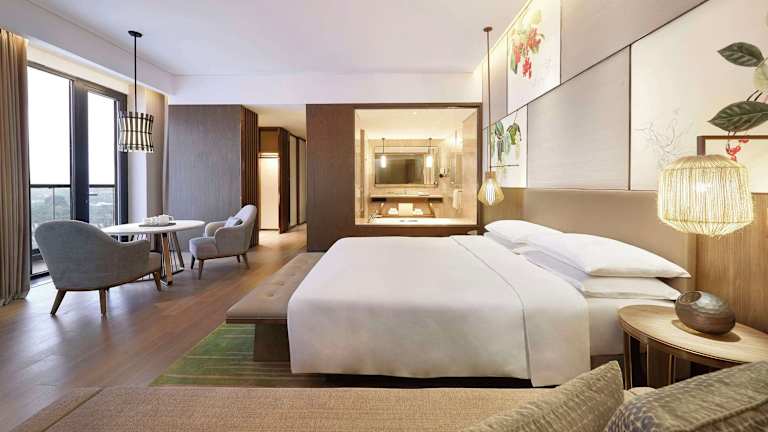 Die Zimmer im Hyatt Regency Beijing Shiyuan sind komfortabel eingerichtet und bieten alles, was Sie für einen angenehmen Aufenthalt benötigen. Jedes Zimmer verfügt über einen Kleiderschrank, einen Flachbild-TV und eine Klimaanlage. Das private Badezimmer ist mit einem Haartrockner ausgestattet. Einige Zimmer bieten zudem einen Balkon, von dem aus Sie die schöne Umgebung genießen können. Ein Safe ist ebenfalls vorhanden, um Ihre Wertsachen sicher aufzubewahren.