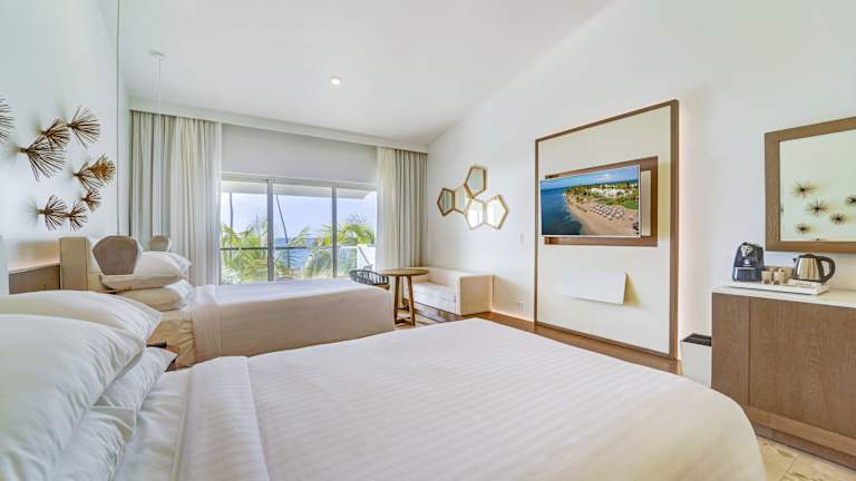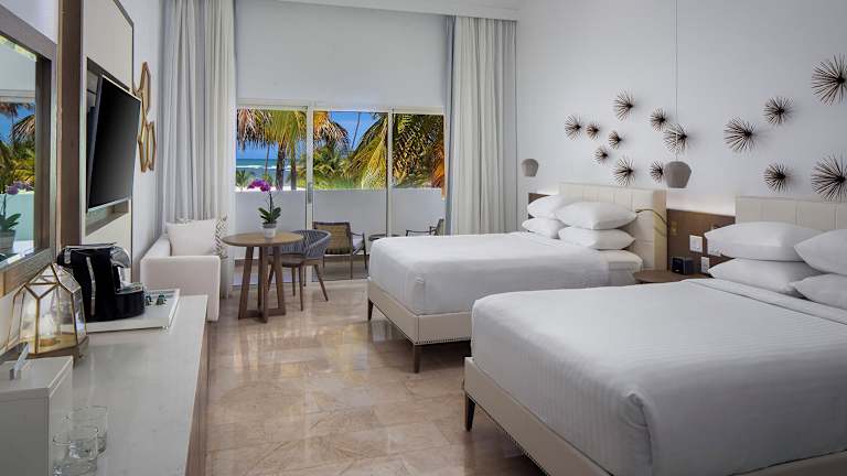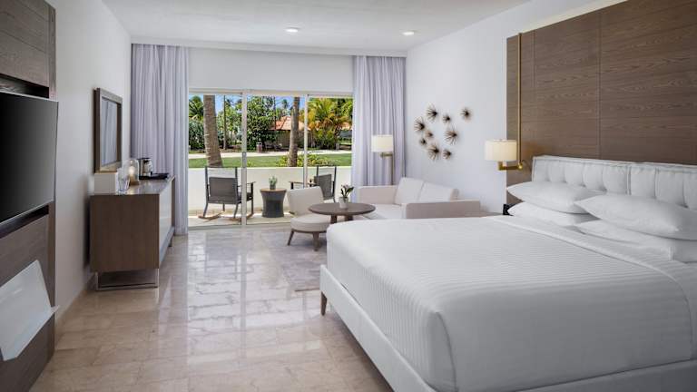 Die Zimmer sind modern und elegant eingerichtet, verfügen über Klimaanlage, Heizung, Minibar und Safe. Die Badezimmer sind mit Dusche und Badewanne ausgestattet. Einige Zimmer bieten Balkon oder Terrasse mit Blick auf den Pool und die Umgebung. Familienzimmer sowie rollstuhlgerechte Zimmer sind ebenfalls buchbar.
