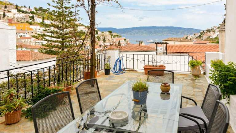 Das Ferienhaus Hydra town, Relaxing patio Panoramic sea view bietet Übernachtungsmöglichkeiten in heimeliger Atmosphäre. Es verfügt über einen Garten, eine Terrasse und kostenfreies Wifi. Gäste können den Balkon des Hauses nutzen, um die schöne Aussicht zu geniessen.