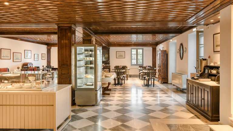 Im Hotel steht ein eleganter Frühstückssaal zur Verfügung, in dem ein kontinentales Frühstück serviert wird. Die Gäste können morgens aus einer Auswahl an Speisen wie Rührei, Speck und Würstchen wählen. Zudem gibt es ein Café und eine Bar für weitere gastronomische Angebote. Snacks und kleine Speisen sind ebenfalls erhältlich.
