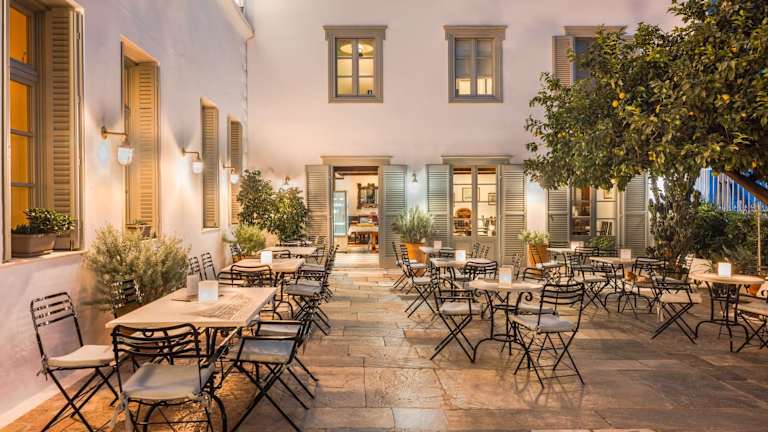 Das Hotel hat eine zentrale Lage im Ort Porto Cheli, etwa 100 m vom Felsstrand entfernt. Es liegt im Gebiet Votsi inmitten schöner Zitronenbäume und in unmittelbarer Nähe zum Hafen von Hydra.