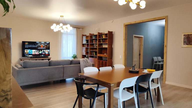 HYGGE HOME ist ein gemütlicher Ferienhaus-Cottage, der gut für mehrere Familien geeignet ist. Er bietet eine heimelige Atmosphäre sowie eine einladende Terrasse und eine Sauna zur Entspannung. Die Unterkunft besitzt zudem einen saisonalen Aussenpool, einen Garten und eine Gemeinschaftslounge, die zum Verweilen einlädt.