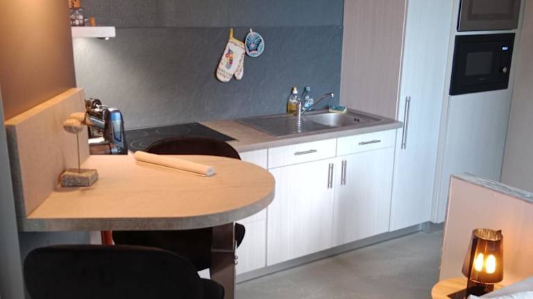 Die Ferienwohnung ist ausgestattet mit 1 Schlafzimmer, 1 Badezimmer, Bettwäsche, Handtüchern, einem Flachbild-TV mit Kabelkanälen, einem Essbereich sowie einer voll ausgestatteten Küche. Zudem steht den Gästen eine Terrasse mit Gartenblick zur Verfügung. Für zusätzlichen Komfort können Handtücher und Bettwäsche gegen Aufpreis bereitgestellt werden.