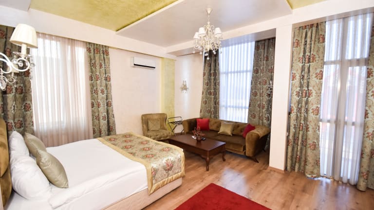 Die Zimmer im Iberia Palace Hotel sind mit einem Schreibtisch sowie einem eigenen Badezimmer mit kostenlosen Pflegeprodukten ausgestattet. Alle Zimmer bieten einen Flachbild-TV und Klimaanlage. Einige Zimmer haben zusätzlich einen Balkon, während die Wohneinheiten auch einen Kleiderschrank beinhalten.