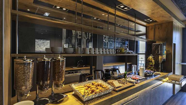 Das Hotel verfügt über ein Restaurant und eine Bar. Jeden Morgen wird ein Frühstücksbuffet angeboten. Zusätzlich gibt es Verkaufsautomaten für Snacks und Getränke.