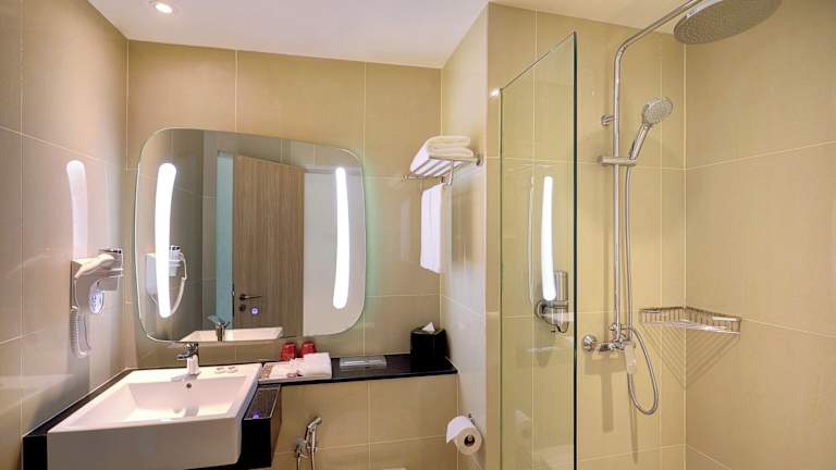 Die Zimmer sind klimatisiert und bieten einen Stadtblick. Es stehen unter anderem Doppelzimmer mit einem Queen Size Bett oder zwei Einzelbetten zur Verfügung. Jedes Zimmer ist mit einem 40-Zoll-Flachbild-TV, einer Minibar, einer Regendusche und kostenlosen Pflegeprodukten im eigenen Badezimmer ausgestattet. Die Zimmer sind mit einem Safe, kostenloser Internetverbindung über WLAN, einem Schreibtisch sowie einem Kaffee-/Teezubereiter ausgestattet.