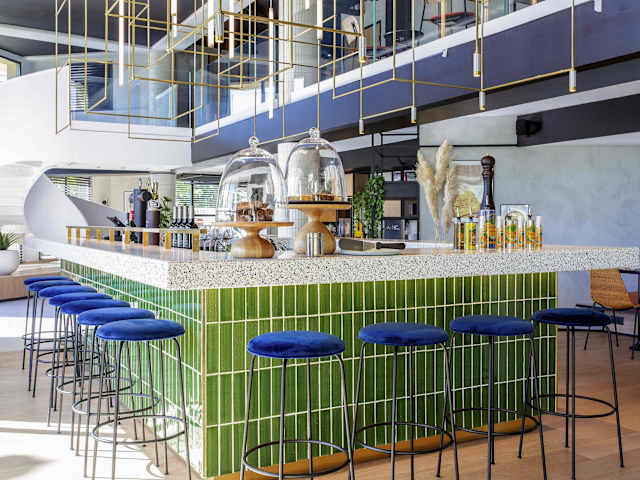 Das tägliche Frühstücksbuffet umfasst eine Vielfalt an süssen und herzhaften Speisen, darunter Eier, Obstsalat, Joghurt sowie Säfte. Es werden auch frische französische Madeleines und gebackenes Gebäck angeboten. Ein Heissgetränk und ein Stück Obst stehen für den Mitnehm-Service bereit. In der Hotelbar können Gäste den Tag bei einem Getränk ausklingen lassen. Ein Restaurant ist ebenfalls vorhanden und bietet eine Auswahl an Gerichten.