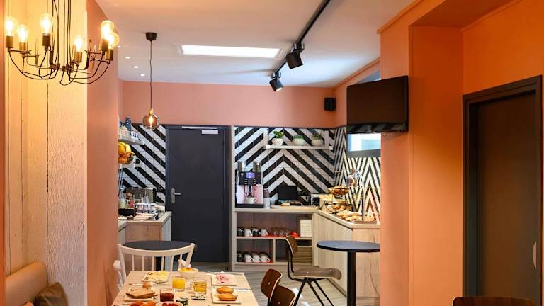 Das Hotel bietet verschiedene gastronomische Einrichtungen, darunter ein Café und eine Bar. Das tägliche Frühstück wird in Form eines Kontinental-Buffets serviert und umfasst süsse und herzhafte Speisen wie Eier, Obstsalat, Joghurt, Säfte sowie frisch gebackene Backwaren und französische Madeleines. Für Gäste, die früher aufstehen, gibt es ab 04:00 Uhr eine leichtere Variante.