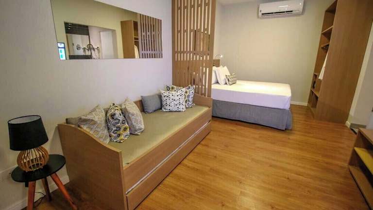 Die Zimmer sind mit einem Queensize-Bett oder einem Sofabett ausgestattet. Zustellbetten können angefordert werden. Des Weiteren stehen ein Safe und eine Minibar zur Verfügung. Die Zimmer verfügen über einen TV sowie kostenfreies Wifi. Das Badezimmer ist mit einer Dusche und einem Haartrockner ausgestattet. Für Gäste mit besonderen Bedürfnissen sind rollstuhlgerechte Zimmer mit barrierefreiem Badezimmer buchbar. Familien- und Nichtraucherzimmer sind ebenfalls erhältlich.