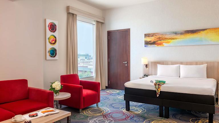 Das Hotel verfügt über 251 Zimmer auf 8 Etagen. Die Zimmer sind modern und komfortabel eingerichtet und bieten Annehmlichkeiten wie Klimaanlage, Heizung, Safe, Minibar, Schreibtisch, Kühlschrank, Tee-/Kaffeemaschine, Telefon, Flachbildfernseher und kostenfreies WLAN. Im Badezimmer finden Sie eine Dusche, eine Badewanne und einen Haartrockner.