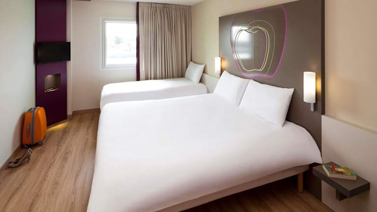 Die klimatisierten und schallisolierten Zimmer sind mit Teppichböden ausgestattet und verfügen über ein Doppelbett, einen Schreibtisch, ein Telefon, einen Flachbild-TV sowie WLAN. Die Badezimmer sind mit einer Dusche oder Badewanne und einem Haartrockner ausgestattet. Rollstuhlgerechte Zimmer sind ebenfalls verfügbar. Familienzimmer sind für Eltern mit Kindern verfügbar.