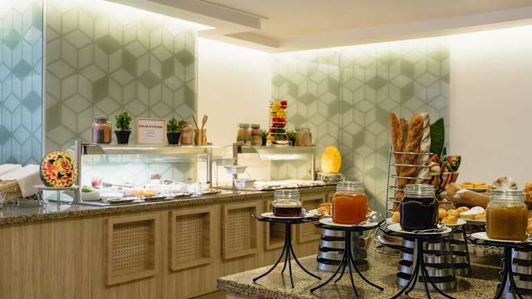 Das Hotel bietet eine Reihe von gastronomischen Einrichtungen, darunter ein Café und ein Nichtraucherrestaurant mit internationalen und leichten Mahlzeiten. Ein energieförderndes Frühstück wird täglich serviert. Auf Wunsch sind Kindermenüs und Halal-Kost verfügbar.