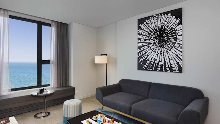 Die Zimmer des Hotels sind modern eingerichtet und bieten ein angenehmes Raumklima dank Klimaanlage. Die Ausstattung umfasst ein Doppelbett oder Queensize-Bett, ein Sofabett, einen Safe, eine Minibar und einen Schreibtisch. WLAN ist kostenfrei, und viele Zimmer bieten einen schönen Blick auf das Meer. Die Badezimmer sind mit Dusche und Badewanne ausgestattet und bieten Kosmetikartikel sowie Handtücher. Es sind auch barrierefreie Zimmer verfügbar.