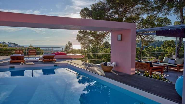 Ibiza Villa Sea and Sunset View bietet eine heimelige Ausstattung mit kostenlosem Wifi, einer Klimaanlage und einem Aussenpool, umgeben von einem schönen Garten. Die Villa ist grosszügig gestaltet und beinhaltet 4 Schlafzimmer sowie 5 Badezimmer, Bettwäsche und Handtücher. Ein Balkon bietet einen eindrücklichen Meerblick und eine voll ausgestattete Küche sorgt für Bequemlichkeit während Ihres Aufenthalts.