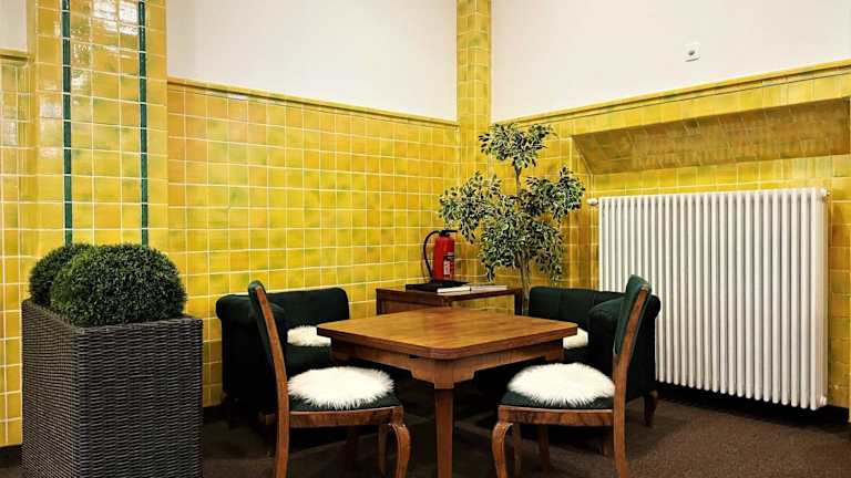 Die Zimmer im IBS Begegnungszentrum sind mit einem Schreibtisch sowie einem eigenen Badezimmer mit Dusche und Haartrockner ausgestattet. Einige Zimmer bieten zusätzlich einen Sitzbereich.