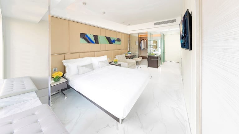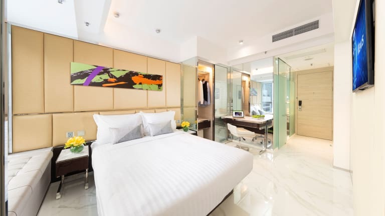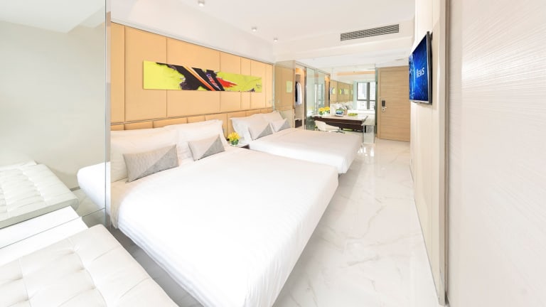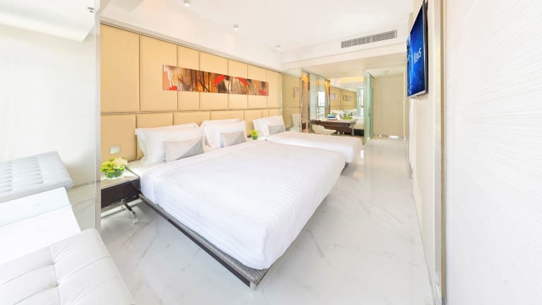 Die Zimmer sind klimatisiert und verfügen über ein Kingsizebett sowie ein Sofabett, mit der Möglichkeit, Zustellbetten anzufordern. Zur Ausstattung gehören ein Safe, ein Schreibtisch, ein Flachbild-TV und ein Wasserkocher. Das eigene Badezimmer ist mit einer Dusche, einem Haartrockner und Kosmetikartikeln ausgestattet. Des Weiteren stehen den Gästen Hausschuhe zur Verfügung. Die Unterkunft bietet Familien- und Nichtraucherzimmer.