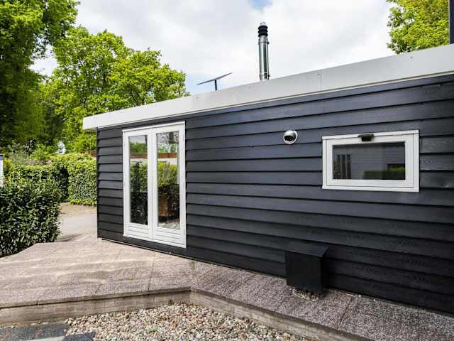 Ideaal Veluwe bos Chalet ist eine heimelige Unterkunft mit Garten und Terrasse. Die Unterkunft bietet einen gemütlichen Raum mit einer stilvollen Pelletkachel und ist für die Bequemlichkeit der Gäste mit kostenlosem WLAN ausgestattet.