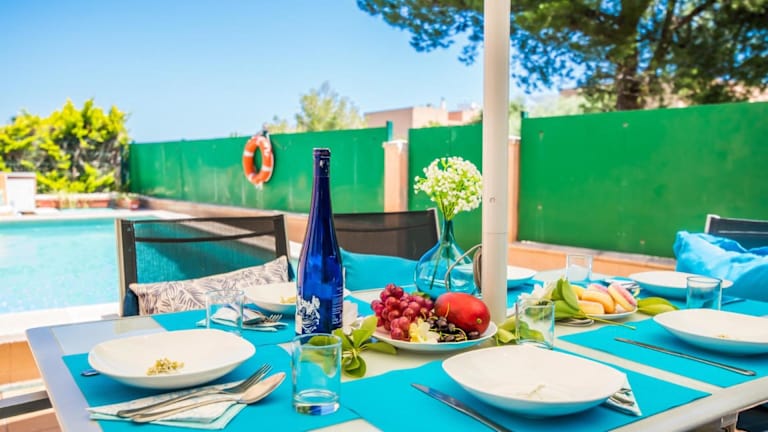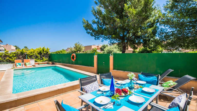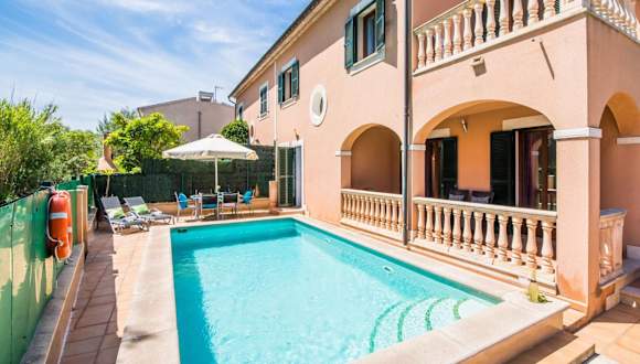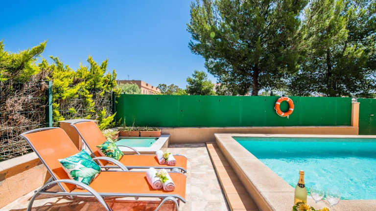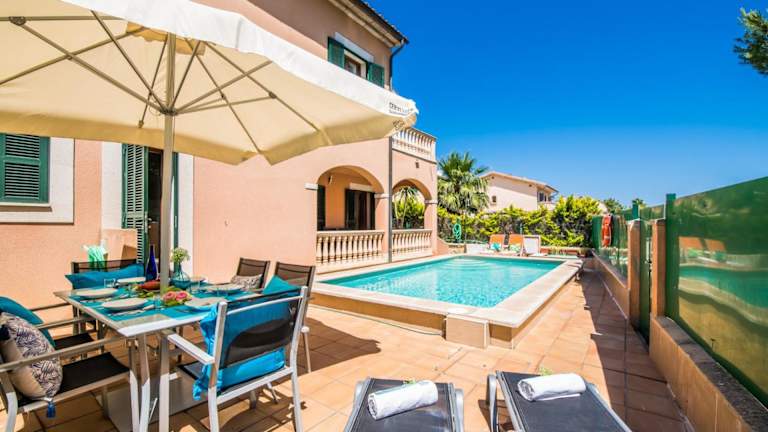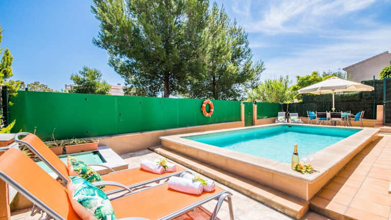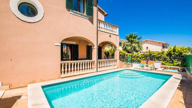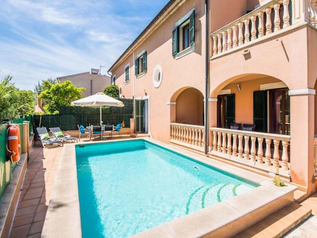 Ideal Property Mallorca - Delicias bietet klimatisierte Übernachtungsmöglichkeiten mit einem Balkon und gratis Wifi. Dieses Ferienhaus verfügt über 3 Schlafzimmer, 3 Badezimmer, einen eigenen Pool sowie eine voll ausgestattete Küche. Die Einrichtung umfasst Bettwäsche, Handtücher und einen TV mit Satellitenkanälen. Eine Terrasse mit Blick auf den Pool ergänzt das Angebot.