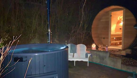 Idylle Seepark - Haus mit Pool und Fasssauna ist ein einladendes Ferienhaus mit 3 Schlafzimmern, einer klimatisierten Einrichtung und einer Terrasse. Das Haus bietet die Möglichkeit, sich mit kostenlosem Wifi zu verbinden.