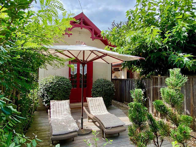 Das Idyllic Chalet right near the dunes in Cap Ferret bietet eine heimelige Atmosphäre mit einem Garten und Grillmöglichkeiten. Diese Nichtraucherunterkunft verfügt über eine Terrasse, auf der Gäste den Blick ins Grüne geniessen können. Der Aufenthalt ist für Ferien und die Erholung gedacht, das Führen von Junggesellenabschieden oder ähnlichen Feiern ist nicht gestattet.