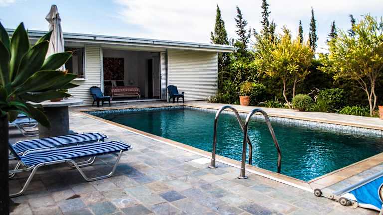 Es wird eine Poolbar angeboten, und Lebensmittellieferungen sind ebenfalls möglich. Gäste können auf der Terrasse verweilen und die Grillmöglichkeiten nutzen.