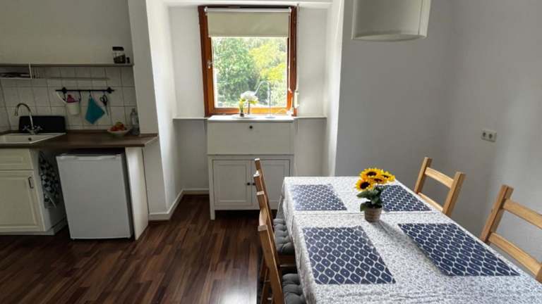 Die Ferienwohnung verfügt über 1 Schlafzimmer und ist ausgestattet mit einer Küche, die einen Kühlschrank und einen Ofen beinhaltet. Zudem finden die Gäste einen Flachbild-TV, einen Sitzbereich sowie ein Badezimmer mit Dusche vor. Handtücher und Bettwäsche werden bereitgestellt.