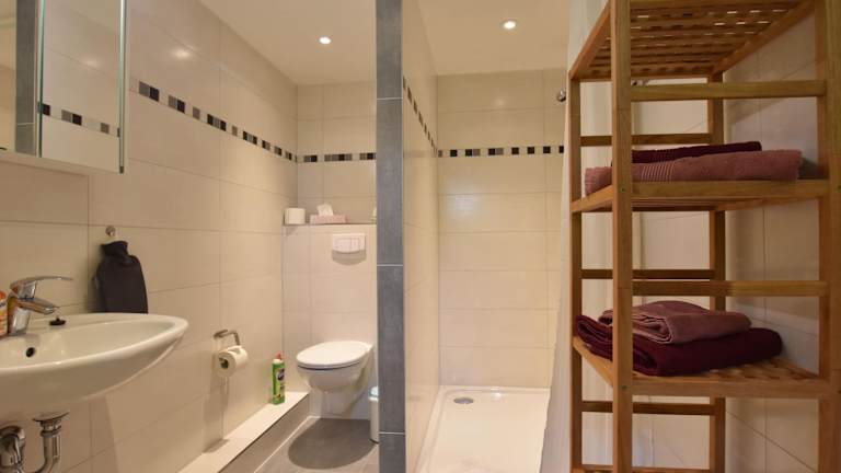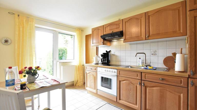 Die Ferienwohnung verfügt über ein Schlafzimmer, ein Wohnzimmer sowie eine voll ausgestattete Küche mit Kühlschrank und Essbereich. Ein Badezimmer steht ebenfalls zur Verfügung. Handtücher und Bettwäsche werden bereitgestellt. Zudem können Gäste einen Grill in der Unterkunft nutzen.
