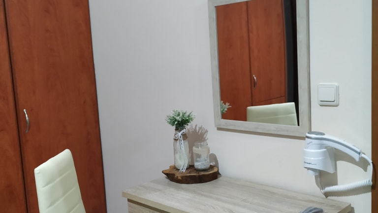 XL Wardrobe,Double Bed,Bedside tables,Socket near the bed,Sofa bed,floor with tile, iron, ironing board, Dining area,Sofa,Sitting area,Desk, Flat-screen TV, air-condition, free wi-fi