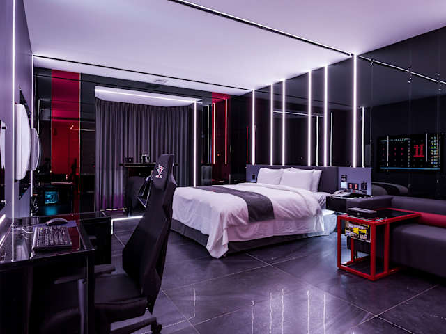 Die Zimmer sind mit einem Flachbild-Kabel-TV, einem Computer, einem professionellen Spielsessel, einem Sofa und einem Elektroherd ausgestattet. Ein eigenes Bad mit einer Whirlpool-Badewanne oder einer Dusche gehört ebenfalls zu den Annehmlichkeiten der Zimmer. Kostenfreie Pflegeprodukte und ein Haartrockner sind vorhanden. Zudem bietet die Unterkunft WLAN in allen Bereichen und Klimaanlage.