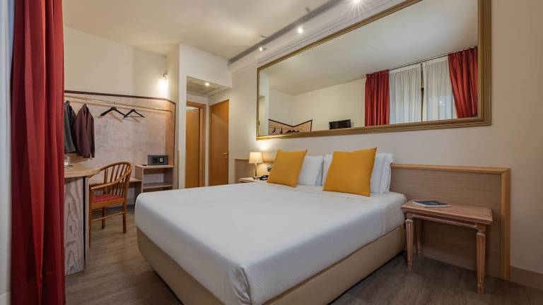 Die Aufmerksamkeit für den Gast wird durch den Komfort in allen Details der 96 eleganten Zimmer wahrgenommen: geräumig und hell, mit Doppelfenstern für perfekte Schallisolierung und Klimaanlage. Im Bad finden die Feriengäste einen Haartrockner vor. Zur Grundausstattung zählen eine Minibar und ein Safe.