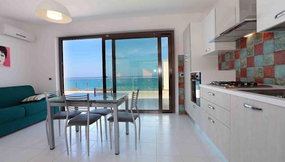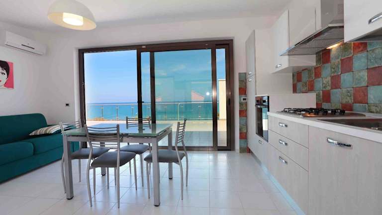 Il Gabbiano - Case Vacanze bietet Übernachtungsmöglichkeiten direkt am Strand und verfügt über eine Terrasse sowie ein Restaurant. Diese Ferienwohnung bietet kostenfreies WLAN und einen herrlichen Blick auf das Meer. Die Unterkunft ist eine Nichtraucherunterkunft, in der alle öffentlichen und privaten Bereiche rauchfrei sind.