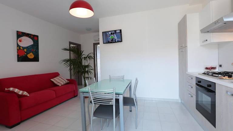 Die Ferienwohnung besitzt 1 Schlafzimmer, ein Wohnzimmer sowie ein voll ausgestattete Küche mit Kühlschrank und Kaffeemaschine. Ein Badezimmer mit Bidet und Dusche ist ebenfalls vorhanden. Handtücher und Bettwäsche werden zur Verfügung gestellt, und die Ferienwohnung ist klimatisiert.