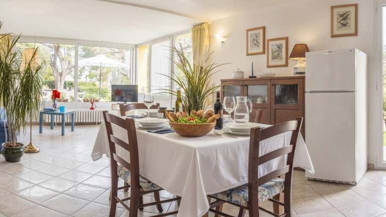Die Ferienwohnung verfügt über 2 Schlafzimmer, einen Flachbild-TV mit Satellitenkanälen sowie eine gut ausgestattete Küchenzeile mit Kühlschrank und Geschirrspüler. Das Badezimmer ist mit einem Bidet ausgestattet. Handtücher und Bettwäsche sind gegen Aufpreis erhältlich.