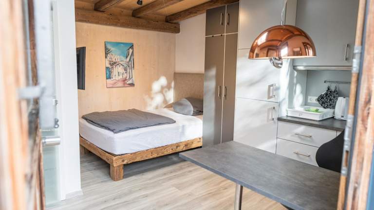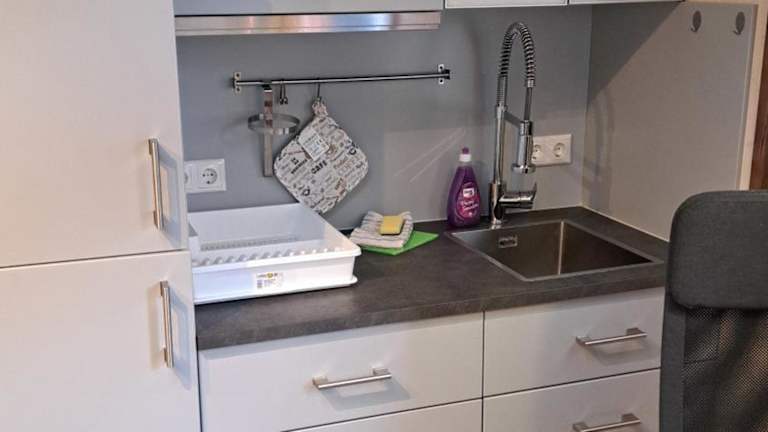Die Unterkunft bietet ein gemütliches Wohnzimmer, in dem die Gäste sich wohlfühlen können, sowie eine Küchenzeile für die Selbstverpflegung.