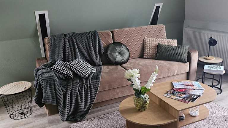 Die Ferienwohnung verfügt über eine voll ausgestattete Küche mit Kühlschrank und Kaffeemaschine, die es Gästen ermöglicht, ihre eigenen Mahlzeiten zuzubereiten. Es sind jedoch keine Informationen über zusätzliche Verpflegungsmöglichkeiten vorhanden.