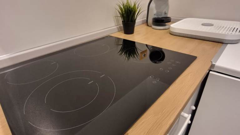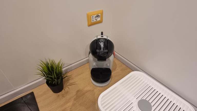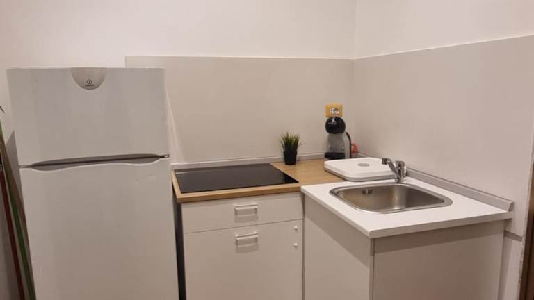 Die Küchenzeile der Ferienwohnung ist ausgestattet mit einem Kühlschrank, einer Herdplatte, einem Toaster, einer Kaffeemaschine und einem Wasserkocher, was die Zubereitung von einfachen Mahlzeiten ermöglicht. Weitere Essensmöglichkeiten sind in der Nähe der Unterkunft zu finden.