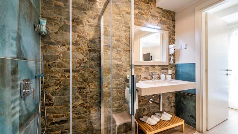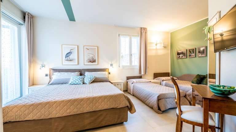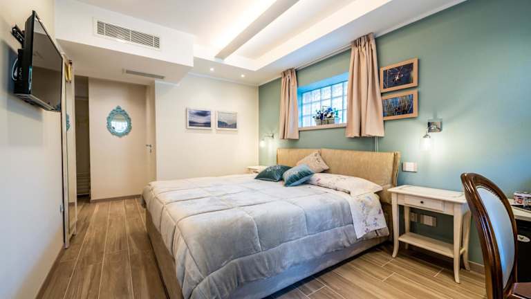 Die klimatisierten Zimmer in der Unterkunft sind mit einem Schreibtisch, einer Kaffeemaschine, einem Kühlschrank, einer Minibar und einem Safe ausgestattet. Ein Flachbild-TV sowie ein eigenes Badezimmer mit einem Bidet sind ebenfalls vorhanden. Bettwäsche und Handtücher werden gestellt. Einige Zimmer verfügen zusätzlich über eine Terrasse.