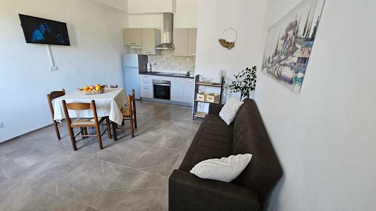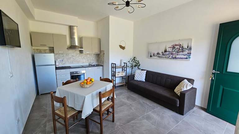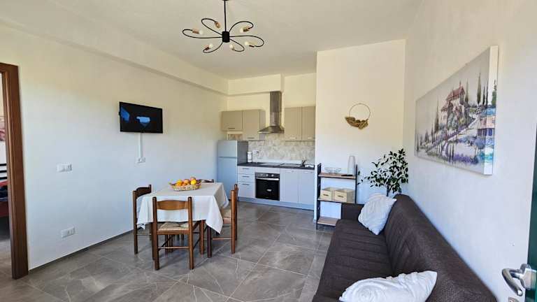 Die Ferienwohnung verfügt über 1 Schlafzimmer, ein Wohnzimmer mit einem Satelliten-Flachbild-TV, eine gut ausgestattete Küche sowie ein Badezimmer mit einem Bidet und einer Dusche. Die Unterkunft bietet zudem eine Terrasse mit Blick auf die Berge. Handtücher und Bettwäsche werden zur Verfügung gestellt.